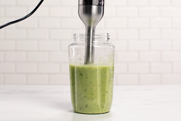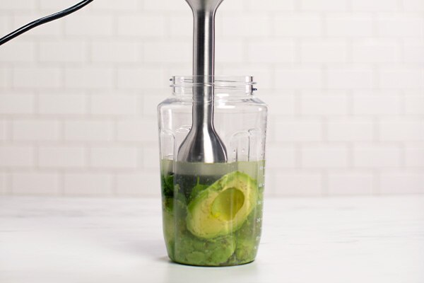 Start the blender on its lowest speed, then quickly increase to its highest speed. Move the immersion blender around, including up and down, to blend the ingredients for approximately 60 seconds or until desired consistency is achieved.