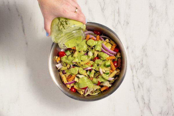 Toss the sauce and pasta to combine. Store in an airtight container and refrigerate until ready to serve.