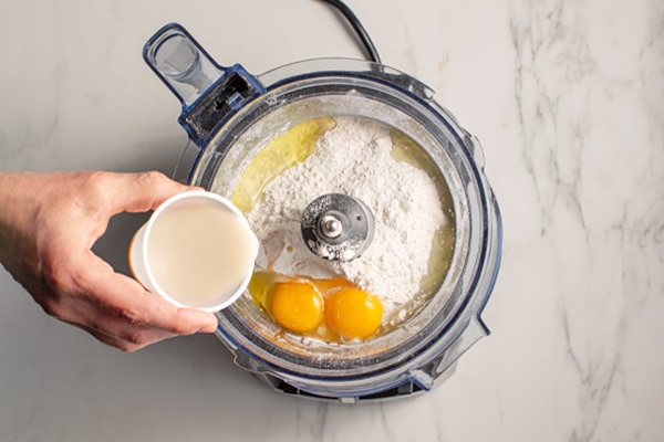 Step 1: Fit the Food Processor with the Multi-Use Blade, add the dumpling ingredients to the container, and secure the lid. Start the machine and process for 10 seconds. The dough should resemble a batter. Set aside.