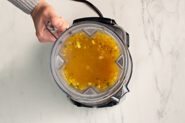 Step 4: Let soup mixture cool for 3 – 5 minutes. Add soup mixture to the Vitamix blending container, secure the lid and blend for 60 seconds.