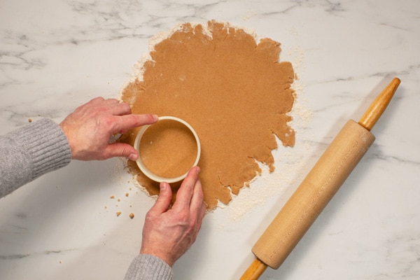 Step 5: Roll out the dough into a 1/8 inch thick sheet. Cut out 6 circles large enough to cover the ramekins fully.