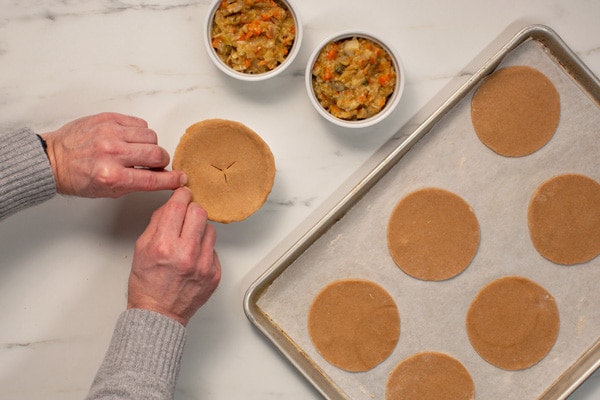 Step 6: Cover ingredients with the dough circles, pressing the edges tightly to seal. Place small slits in the center of the dough and chill for 15 minutes.