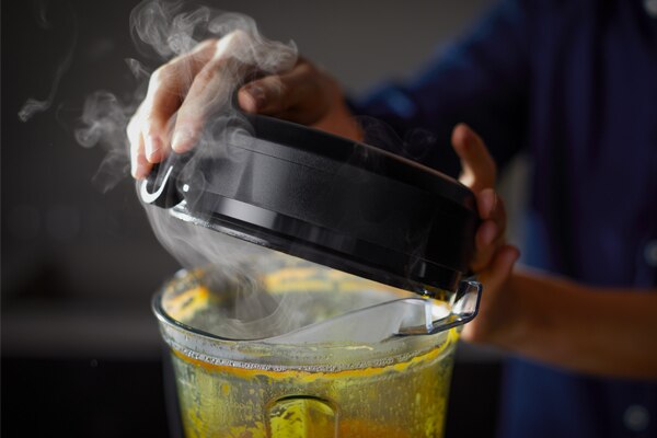 DO be careful blending hot liquids in your blender. Let any hot liquids added to your recipe cool for 3-5 minutes before adding them to your blender. Use caution when working with hot liquids because spray or escaping steam may cause burns. If the blender lid isn’t vented, pressure may also build up causing the blending container to explode.