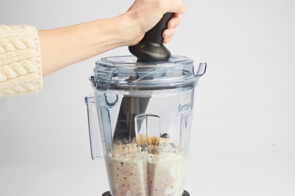 For thick, challenging blends, the Tamper can help get the mixture moving while breaking up air pockets that form around the blade. Simply rotate the tamper around the four corners of the container until a vortex begins to form and your blend is moving freely.
