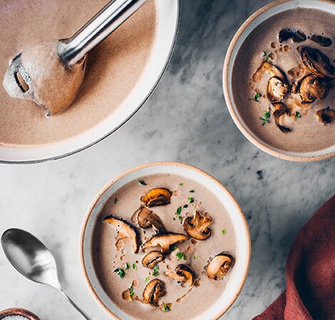 The preparation couldn’t be easier: Simply blend two parts cashews to one-part water until smooth. Many recipes you’ll find online call for soaking the cashews overnight to soften them, but the blending power of a Vitamix makes that step unnecessary. We recommend storing cashew cream in the refrigerator, and using it as needed in other recipes. Thin it with water for instant cashew milk. Mix in chopped chives or other fresh herbs for a dairy-free bagel schmear. Its versatility is what makes cashew cream one of the best dairy alternatives we’ve found.