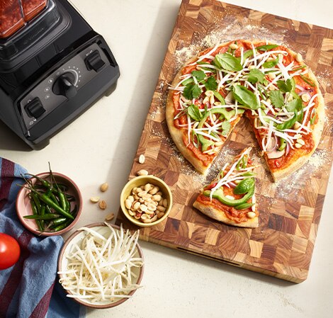 Thai curry typically involves a complex process, but Vitamix can quickly and efficiently blend down these unique ingredients and spices. Paired with a fresh pizza dough, this fusion pie can be made with vegetables and vegan cheese.